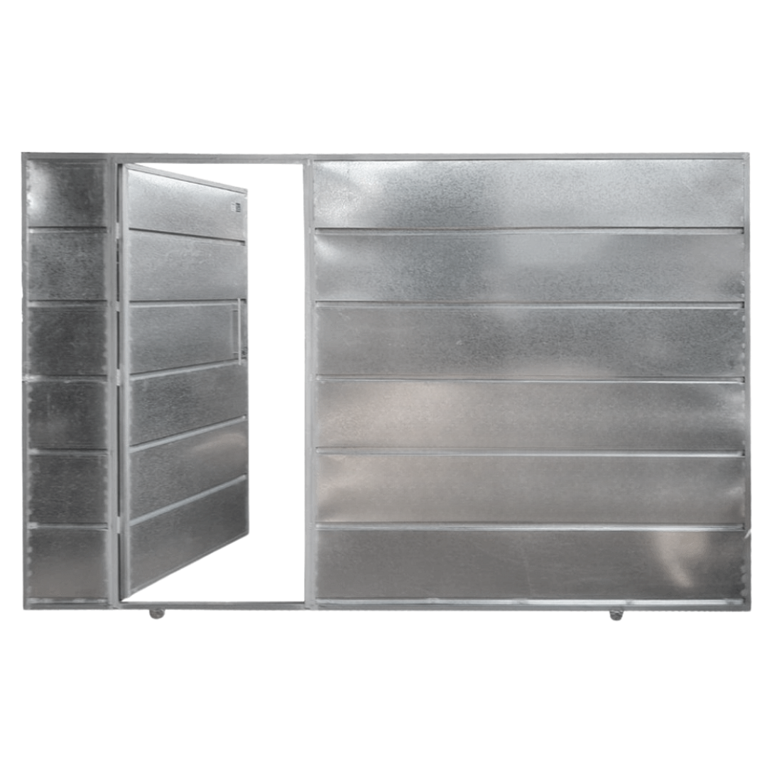 O Portão de Correr Frisado Acoplado é entregue na cor natural do aço galvanizado e pronto para ser instalado pelo comprador.