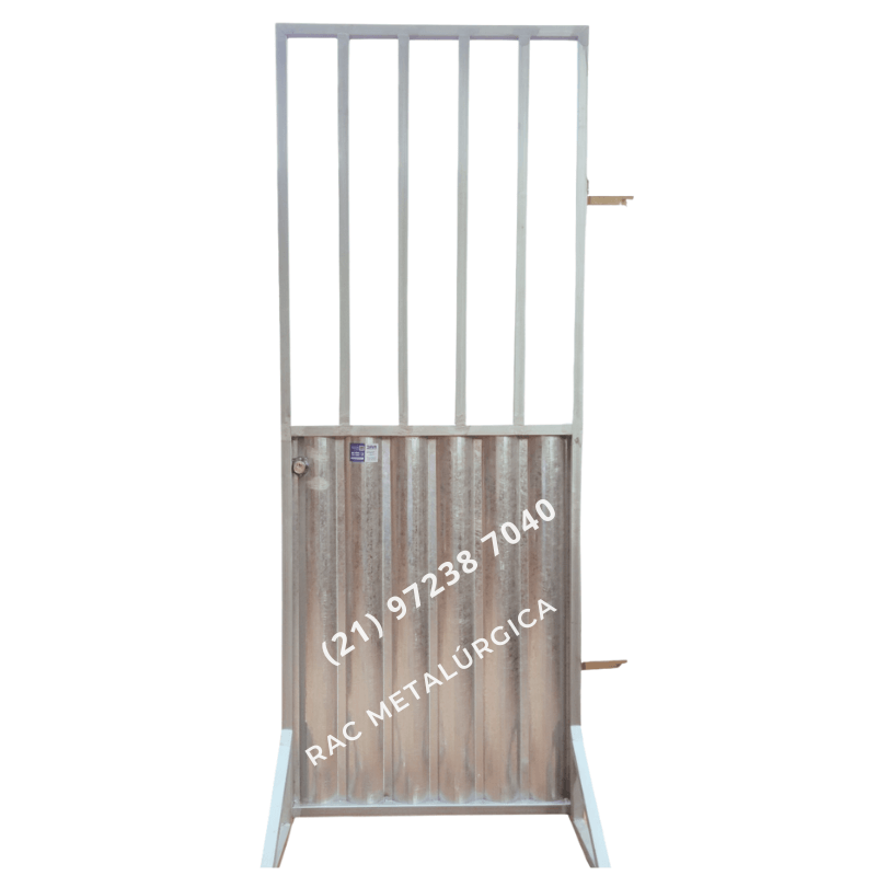 A estrutura e grades são feitas com metalon em aço galvanizado nas medidas de 30mm X 30mm com espessura da parede 18 e chapa galvanizada lambril ondulado na espessura 22. Acompanha fechadura com duas chaves, batente e os chumbadores já soldados no portão.